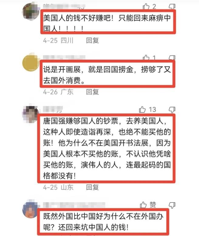 “说是开画展,就是回国捞钱!”
