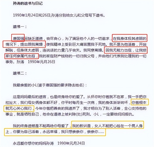 死前她留下两封遗书,一封给自己的娘家,上面道尽对唐国强的怨恨和痛苦,一封给自己女儿:“一定要给妈妈报仇!”