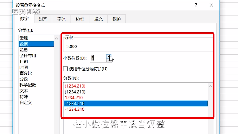 2.选择栏中确认是数学,在分类中选择数学,在小数位数中适当调整,点击确定就ok了。