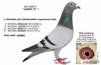2005年的K.B.D.B长距离鸽王全国冠军,由艾利克.林伯格夺得。这羽鸽王,环号B2003-429007直接由帝卢.速霸龙作出,而艾利克.林伯格所使翔,此羽鸽王以468万台币天价被台中“国际鸽舍”引进。