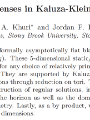 在 2025 年 12 月的论文《Black Lenses in Kaluza-Klein Matter》中,Khuri 和 Rainone 尽可能地概括了 Kunduri-Lucietti 的解。他们首先证明了具有线性棱镜拓扑 L (p, q) 的五维黑洞的存在,对于任何大于或等于 1 的 p 和 q 值,只要 p 大于 q,则 p 和 q 没有共同的质因子。