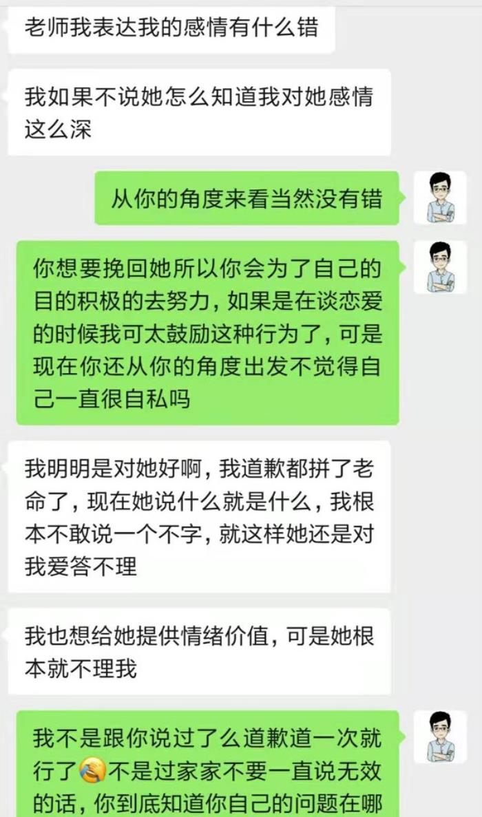 整个挽回过程中,我看着这个男生从一开始什么也不懂,到最后学会主动跟女生交流,把她说的每一个字都记在心里,引导对方表达自己的脆弱。这个男生从一个懵懂的理工科直男成长为了一个细心体贴的成熟男人,非常的不容易。