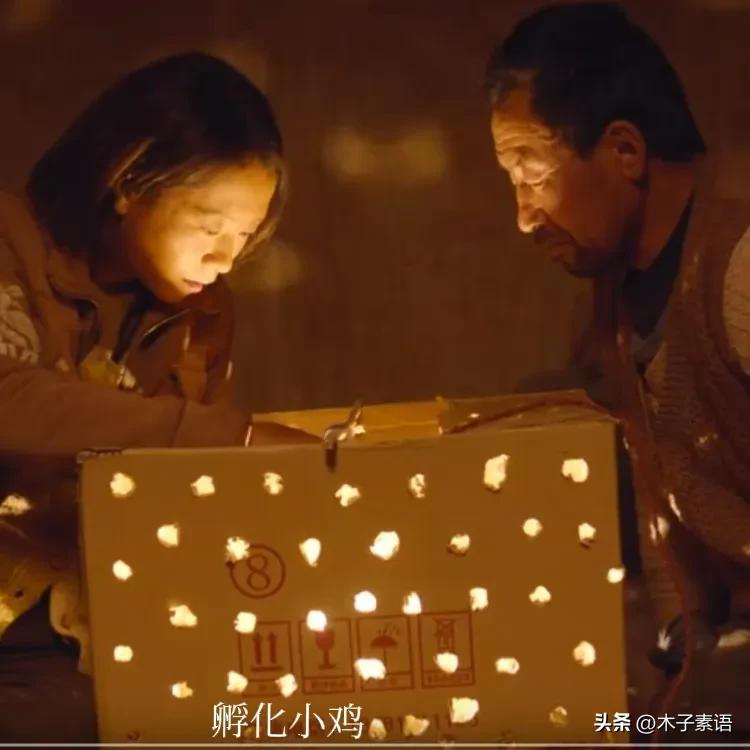 雷雨来临,收拾土块的时候,他说,贵英你回屋吧,下雨感冒了,驴累了半生,他说,草编的驴不吃草不被人使唤,这是对生命的怜悯和敬畏他们结婚后的那一夜,两人无声,灯光暗淡,满屋却是暖光,这是爱情的温度吧。他们借鸡蛋孵小鸡的时候,灯光从纸箱的洞里射出来,那是生命的光亮,那是对生活的希翼,未来可期。
