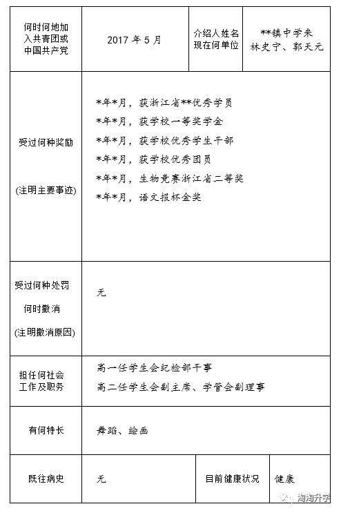 以上信息,仅供考生在填表的时候参考。具体以高中的详细要求为准。