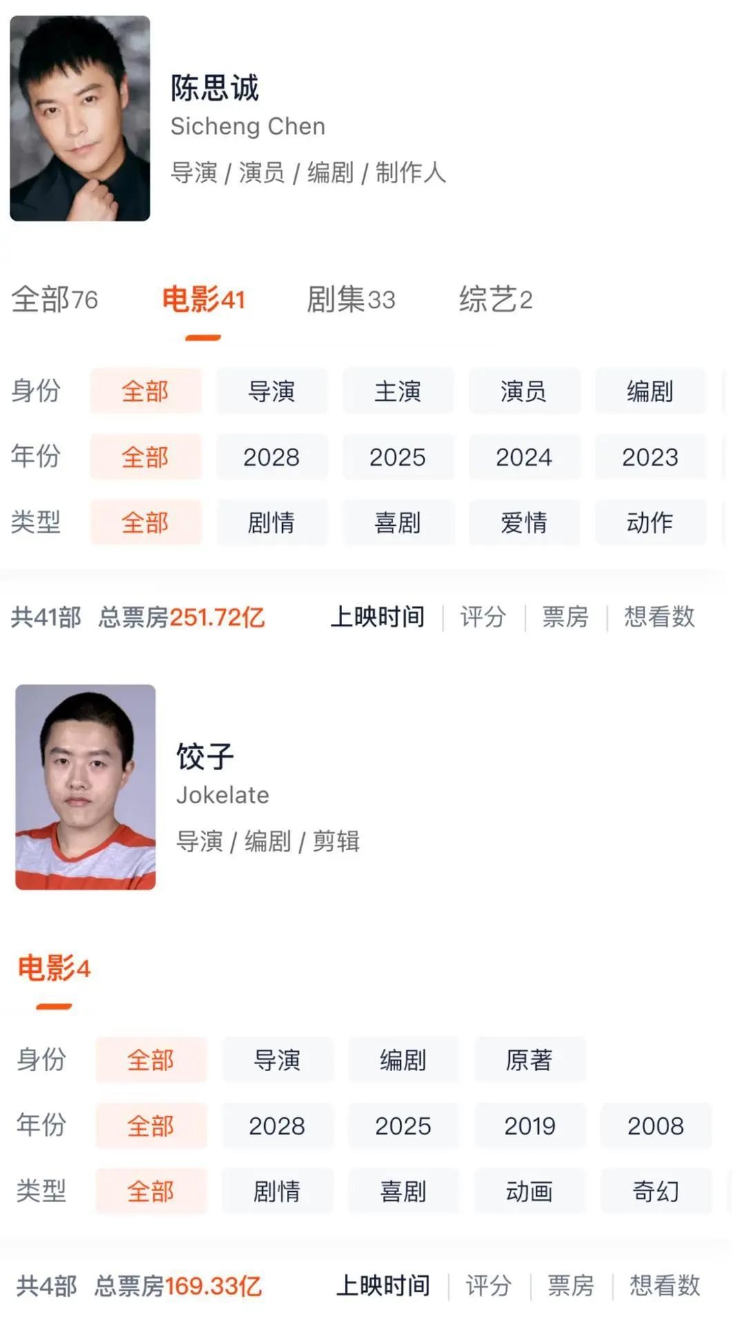 他从来就不是一个单一的导演。若从电影人的复合身份来看,陈思诚监制、编剧、策划、投资的影片票房总额,达250多亿元,非饺子所能敌也。