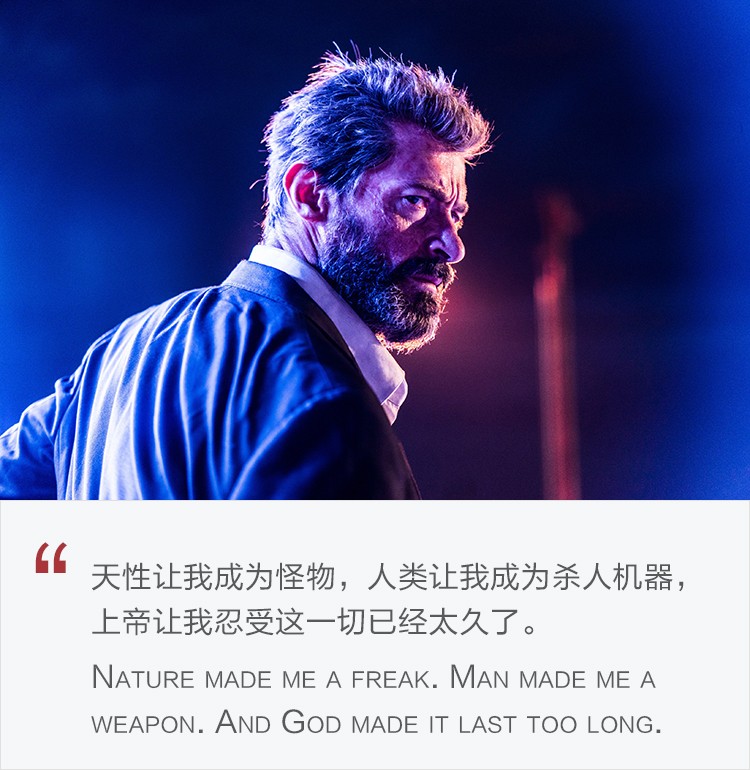 詹姆斯·曼高德用最少的CG特效拍了一部最不像超级英雄电影的《金刚狼》,休·杰克曼甚至自降片酬以保证电影能够顺利拍成R级。给成年人观看的R级不仅仅可以呈现和金刚狼本性相匹配的暴力场面,金刚狼粉丝们长久以来期待看到的血肉之躯遭遇狼爪后的惨烈,更拓宽了创作上的自由度,用更充分的篇幅来塑造人物,更有深度和冲击力的台词来展现其内心世界,更从容不迫的叙事方式来营造悲怆氛围,而不用分分钟抓住观众眼球。
