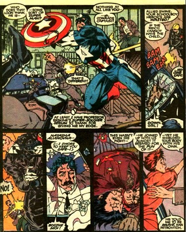 金刚狼和威廉·芒尼一样,曾经是一个冷血杀手,他也是美式漫画中“反英雄”的代表人物。和那些光明磊落的超级英雄们不同,金刚狼遇到坏蛋可不会只像美国队长或者蝙蝠侠那样,仅仅暴揍一顿或者捆起来扔到警察局,而是就地正法并且手段残忍。