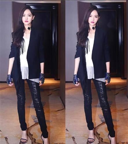 颖宝这身黑色皮衣皮裤,如果再脑补出一副墨镜,基本上可以酷出天际了好蛮!而且能将紧身裤穿出宽松的赶脚,这身材简直无可挑剔,大方又有范儿