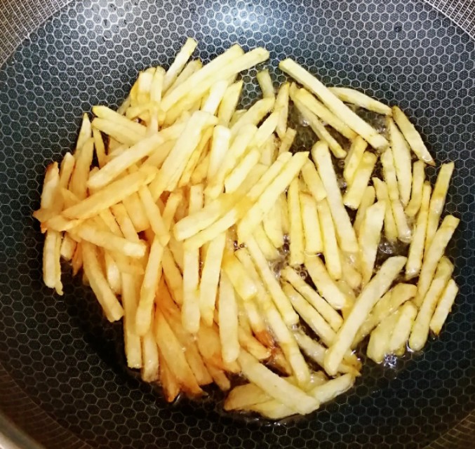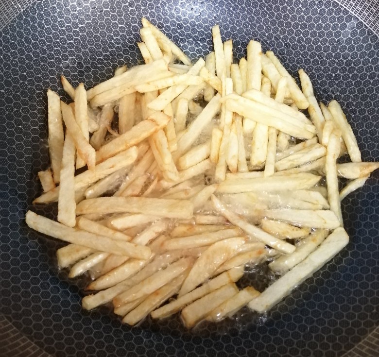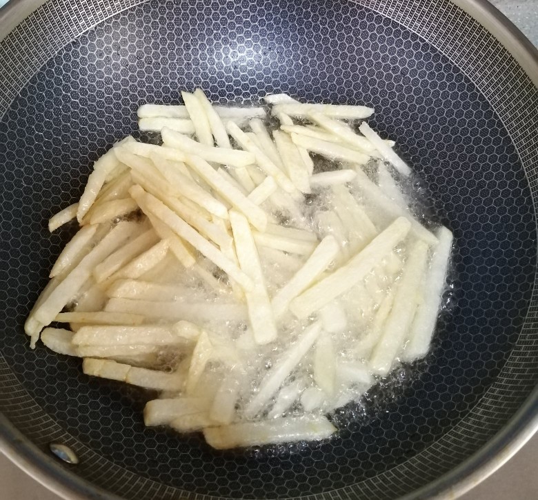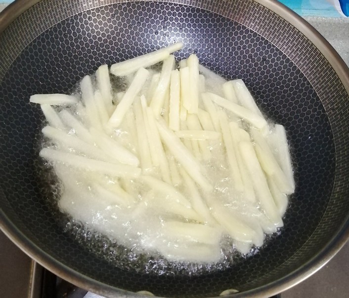 6.炸的过程中,可以用筷子轻轻拨动,以免土豆沾在一起。