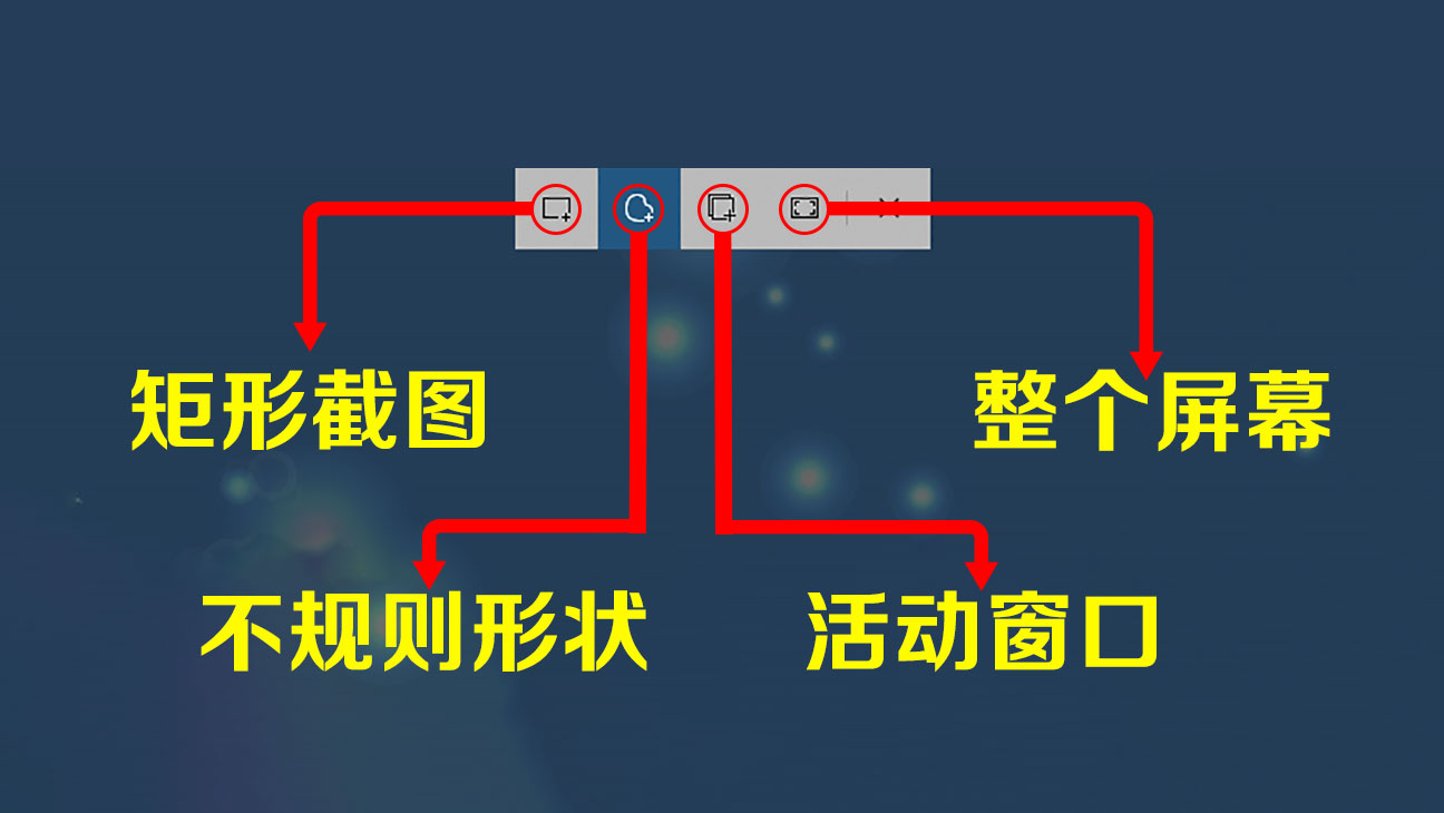 按下这个快捷键后,屏幕会变成半透明的灰色,然后出现一个可以操控的小窗口。这里有4种不同的截图方式,分别是矩形截图、不规则形状截图、活动窗口截图和整个屏幕截图,用户可以根据自己的实际需求选择相应的截图模式。