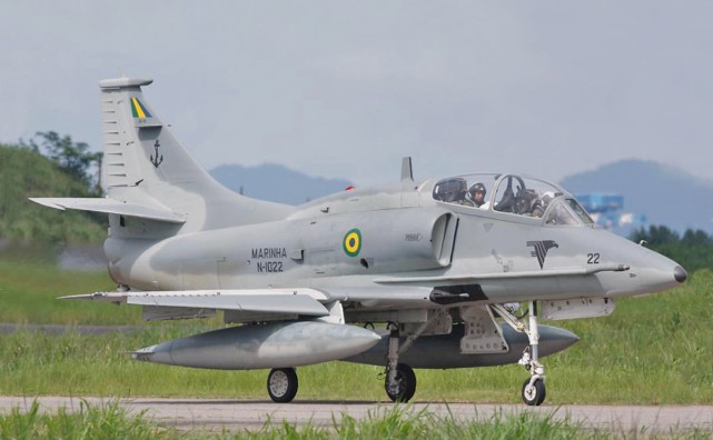 为了搭配“圣保罗”号,巴西于1997年就与科威特签署了价值7000万美元的协议,购买20架单座A-4KU和三架双座TA-4KU二手“天鹰”战斗机。这批于1999年交付的舰载攻击机构成了巴西海军新航母舰载机联队的核心,被巴西人称为AF-1和AF-1A,统一装备第1截击/攻击中队(VF-1)。