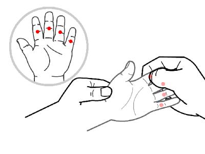 位置:四缝穴,在第2至第5指掌侧,近端指间关节的中央,一手4穴,左右共8穴。