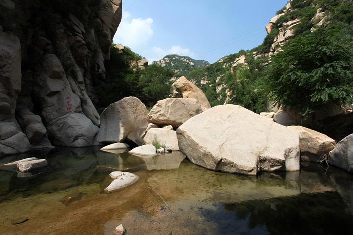在北京昌平长陵镇境内有个有着浓郁的“野趣”的自然景观,它就是碓臼峪自然风景区。碓臼峪紧邻举世闻名的明十三陵,距市区仅50公里,离明十三陵游览区西北约4公里。在崎岖多姿的3公里的长沟内,遍布奇花、异草、峻峰、怪石,两侧山石壁立,一水沟中流淌,故有京北“小三峡”之美称。碓臼峪属于军都山脉,其山石是燕山运动所形成的花岗岩体,经过一亿多年的风化、雕塑而成。风景区内有“琴曲迎宾”、“高峡平流”、“金潭幽谷”等多个景区,计50余个景点。它既有长江三峡的峻拔,桂林山水之秀丽,又有匡庐之飞爆,黄山之迭泉,它以其小巧玲珑的自然景观,堪称“奇异的画廊”,“大自然中的山水盆景”。