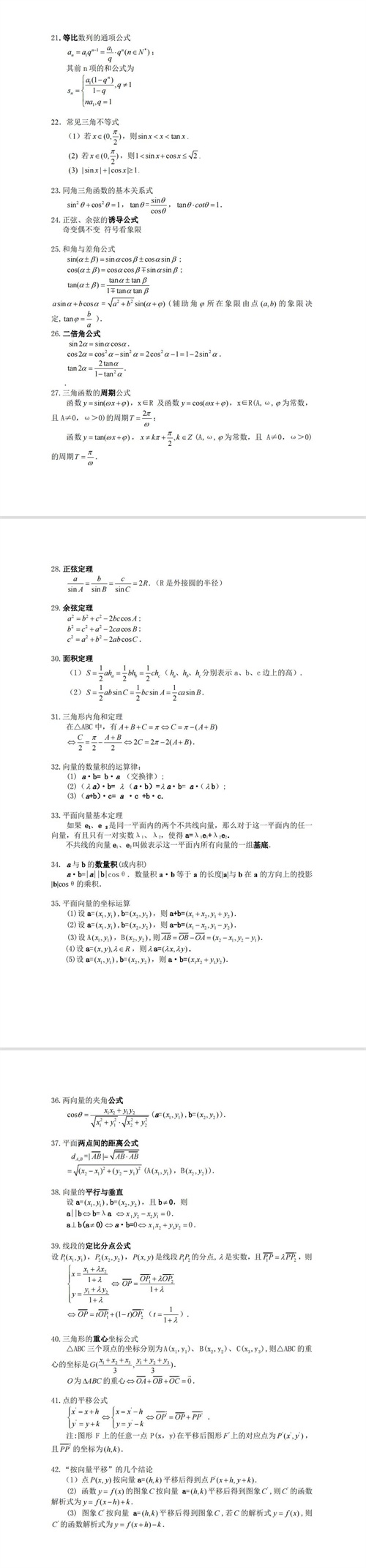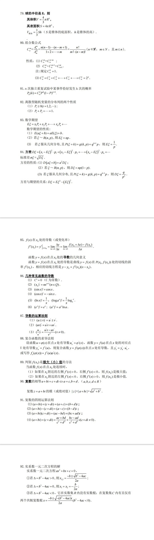 高考数学必备:高中数学常用公式及结论,高清无底纹,需要的存