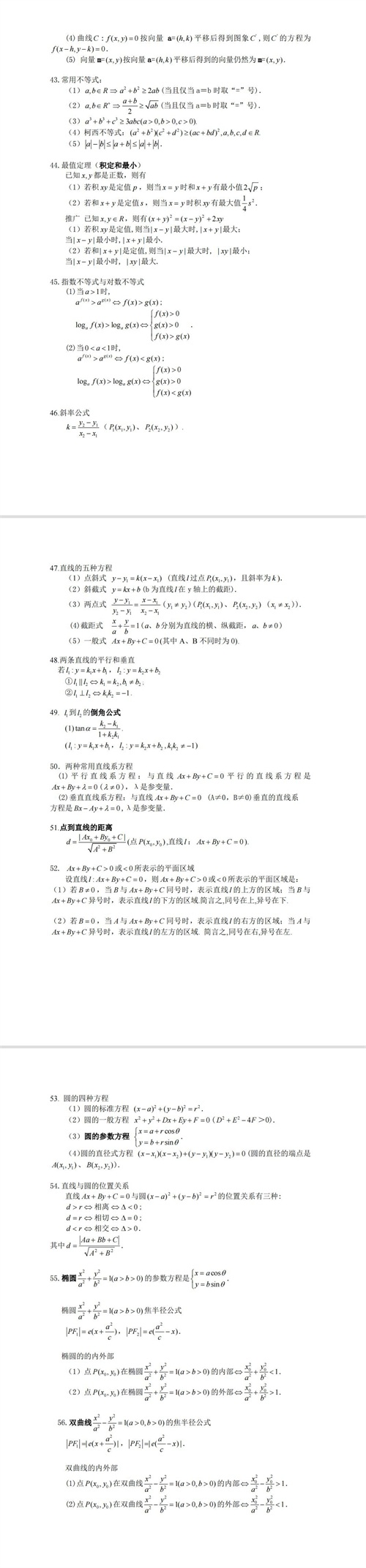 图三主要公式是:常用不等式,最值定理问题,指对不等式,直线性质,圆的方程,直线与圆的距离公式,圆的参数方程,椭圆与双曲线。