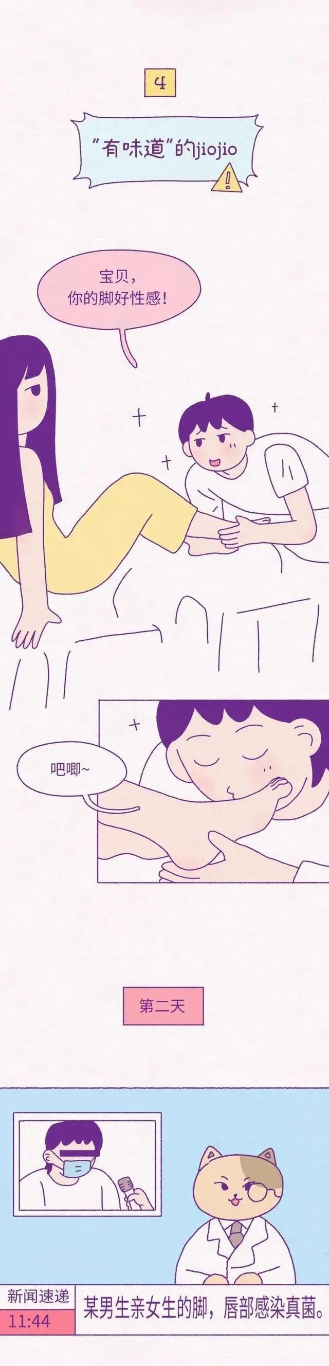 情侣双方接吻是表达爱的方式之一,可以有效增进感情,迅速升温。但是很多男性比较喜欢亲吻女性的脚。虽然听着很尴尬,但确实是很多人的怪癖。不过大家需要注意的是,脚这个部位虽然每天穿着袜子和鞋,看似很干净,那也是真菌培养皿。如果一不小心女方有脚气,那么就有可能导致你唇部传染,感染真菌。从而出现嘴巴蜕皮,溃烂,瘙痒等情况。所以生活中,爱对方也要有节制,不要随便亲吻。