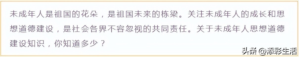 未成年人是祖国的花朵,是祖国未来的栋梁。关注未成年人的成长和思想道德建设,是社会各界不容忽视的共同责任。关于未成年人思想道德建设知识内容,你知道多少?