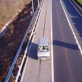 原来的蓝色路面变成了黄色,近距离看也有破损现象,有工作人员驾车巡查。