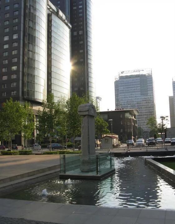 金台夕照据考证遗址之一位于北京市朝阳区东三环中路,现立有“金台夕照”御制石碑一座,题有清乾隆皇帝七律一首: