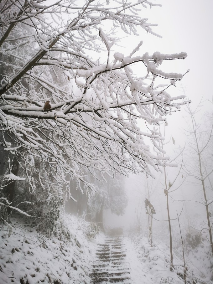 此山非邛崃景区的天台山,位于彭州市龙门山镇、白鹿镇、通济镇三镇交界处的天台山,海拔2400米左右,可开车至半山,直接导航彭州天台山即可,在有一废弃房屋处可停车,旁边即是石梯起点,往返时间约4小时,难度等级:幼儿园(身体健康均可一日往返),全程80%是石梯路,20%是烂泥路,部分路段需要小心通过,中间和山顶均有寺庙可补给,在山顶天气好可见云海及九峰山群山。每年3-4月可以在后半程路边采雪芽菜(野草较多注意甄别,3月采最嫩),经常可以见当地人一麻袋一麻袋地往下装,可以晒干包包子,个人最喜欢焯水凉拌特别好吃,推荐,冬季可玩雪,需带冰爪。