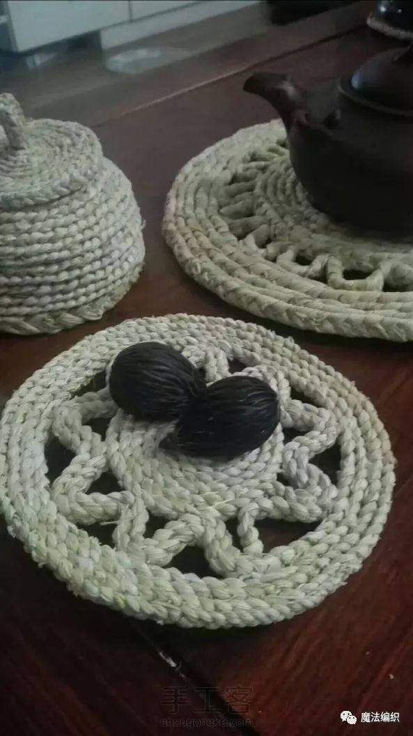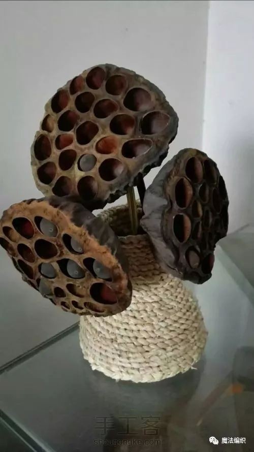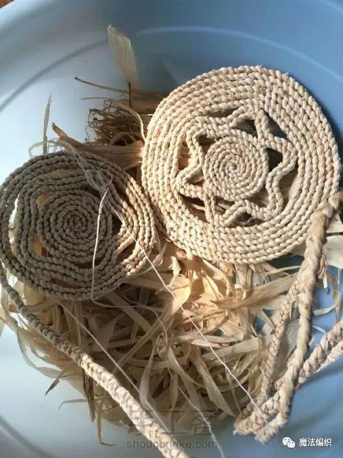 取成熟的玉米皮,分成小条编三股辫、达到所需的长度后用夹子夹着,从另一头团起来成圆形,或者你喜欢的形状开始缝合,也可热熔粘合,我是追求纯天然就用针线缝的,有点虐手哦
