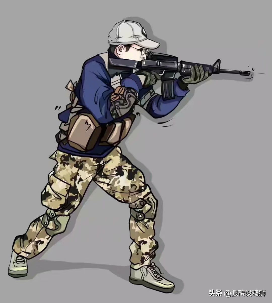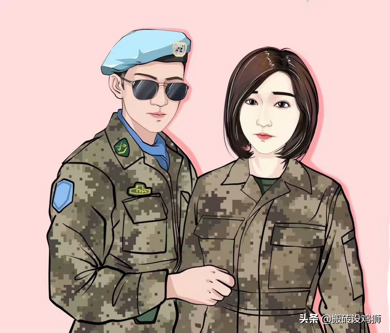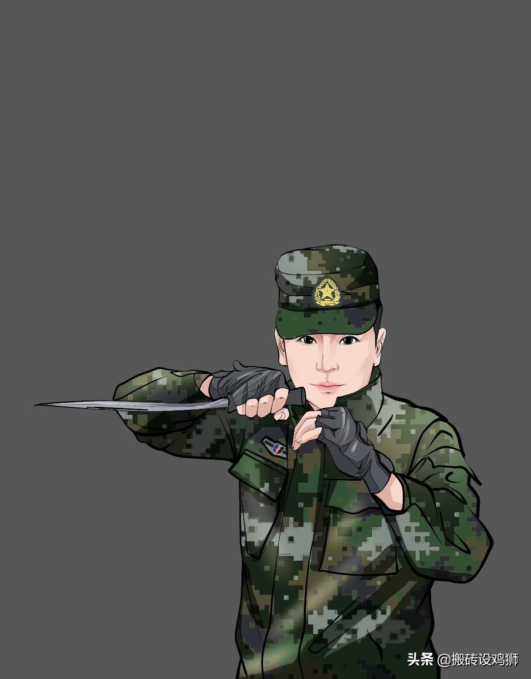 现画了几款头像抒发心中的感情,以表达对军人的敬意。