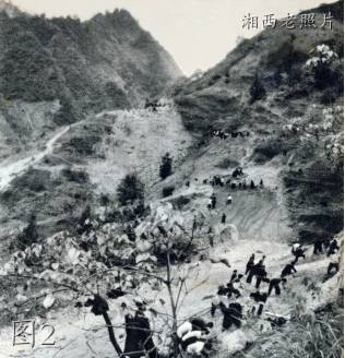 ↑↑↑1950年8月,为进一步改变湘西交通落后面貌,湖南省交通厅向中南军政委员会交通部报告,要求兴修永顺至保靖公路,这是解放后湖南省第一条新建公路。图为修建永保公路现场。 陈庭茂/收集