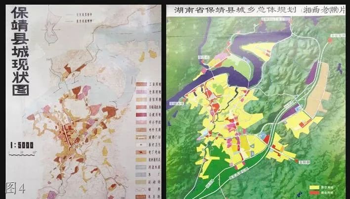 1983年保靖县城现状图与2009年至2030年保靖县城乡总体规划图。