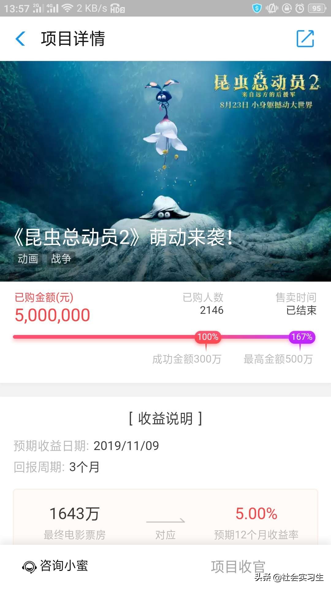 想了解更多的话就关注@社会实习生给我点点赞,私信我即可告诉你们哦。这一投资电影的风险也不高,投资也是会有回报的。