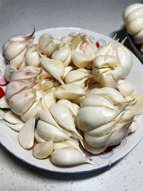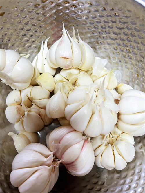 2. 然后,准备6斤新鲜大蒜,将外皮剥去一层备用。