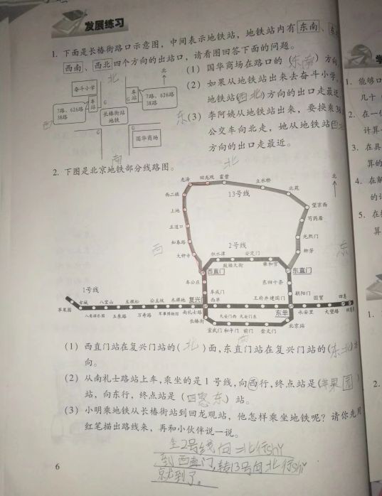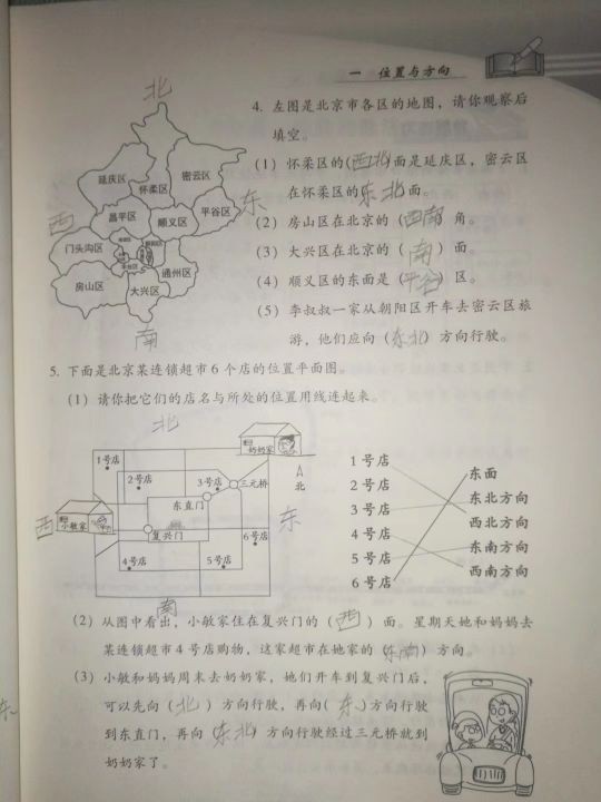 记得某天看孩子的数学题,惊讶地发现东南西北方向全上阵了。我想以后她出门估计不会像我一样分不清东南西北了。