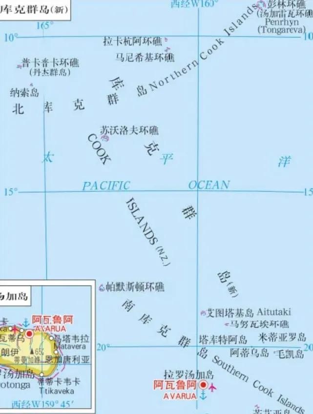 库克群岛,位于南太平洋上,介于法属波利尼西亚与斐济之间,面积240平方公里,是由15个小岛组成的群岛国家,分布在200万平方公里的海面上。其命名起源于远征探索南太平洋,发现了许多岛屿的詹姆斯·库克船长,是新西兰的王国自由结合区。首都阿瓦鲁阿(Avarua),位于拉罗汤加岛。