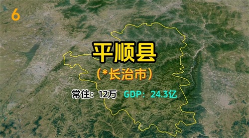 第6名,长治市平顺县,常住人口约12万,地区生产总值约24.3258亿