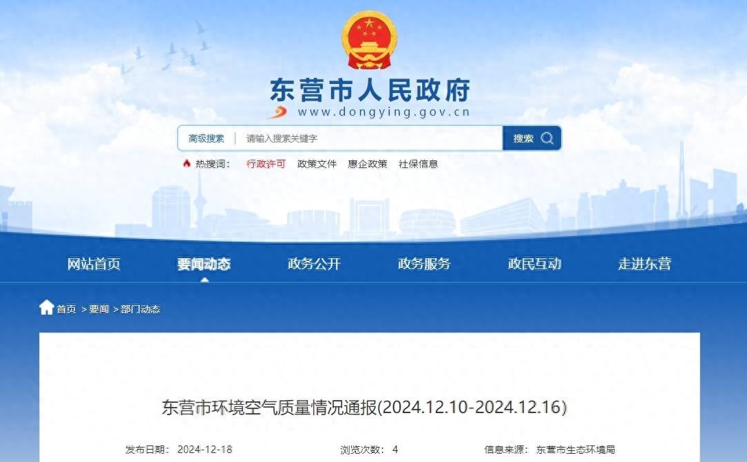 齐鲁网·闪电新闻12月18日讯 12月18日,东营市通报12月10日—12月16日全市环境空气质量排名情况。