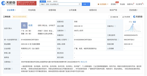近日,记者从天眼查App获悉,坏猴子(深圳)影业有限公司成立,法定代表人为杨青,注册资本300万人民币,经营范围含技术服务、个人商务服务、工业互联网数据服务、电影发行、营业性演出等。股权全景穿透图显示,该公司由天津坏猴子影业有限公司全资持股,后者第一大股东为导演宁浩。