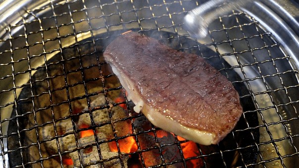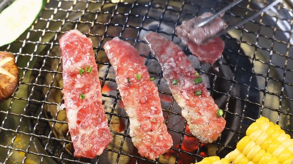 厚实饱满的和牛角切,要在烤网上不断翻动保证四面受热均匀,才能烤得外焦里嫩。入口时一口一粒,还会爆汁。