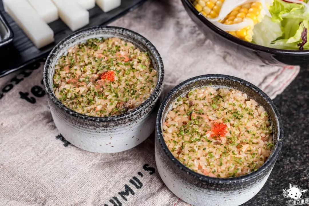 套餐里两份三文鱼肉粹混合的鲑鱼拌饭做为主食,香味十足。两份汤和两份渍物小菜更是解腻开胃的最佳CP。