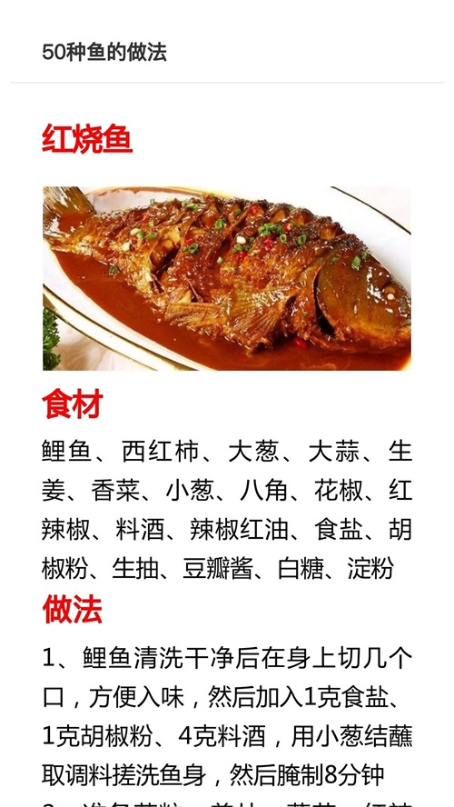 50种鱼的做法及配料(一)家常鱼肉菜单做法大全!鱼的做法教程