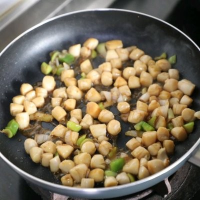 鲜扇贝柱 300克青菜椒 2个葱 1根盐 3克蚝油 1勺料酒 1勺油 1汤匙