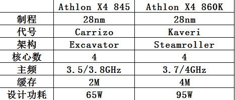 从参数对比来看,Athlon X4 845与Athlon X4 860K还是有一定差距,但Athlon X4 845优势是功耗,比起Athlon X4 860K,Athlon X4 845功耗更低(主频也更低)。更低的功能能否换取更好的能耗比呢?
