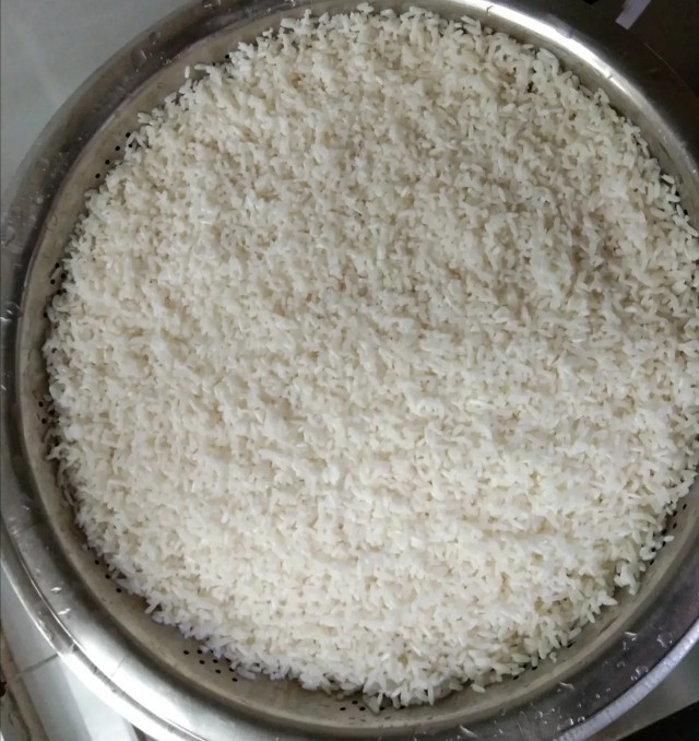 4..用凉水将糯米饭冲凉晾干,将糯米和一定比例的酒饼(酒曲)搅拌均匀,一定要让每粒米饭都沾上酒饼粉。