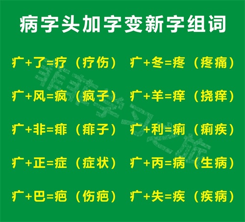 一年级偏旁部首病字头,一年级病字头的汉字,病字头考试知识点