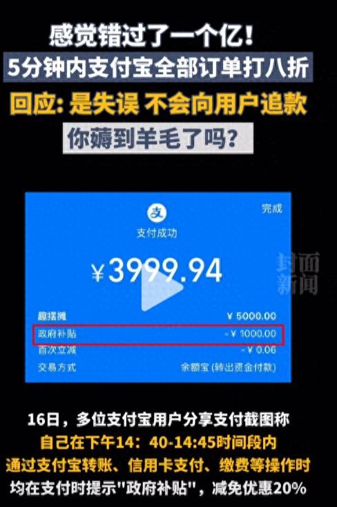 支付宝“神奇漏洞”:全民狂欢,订单一律20%OFF