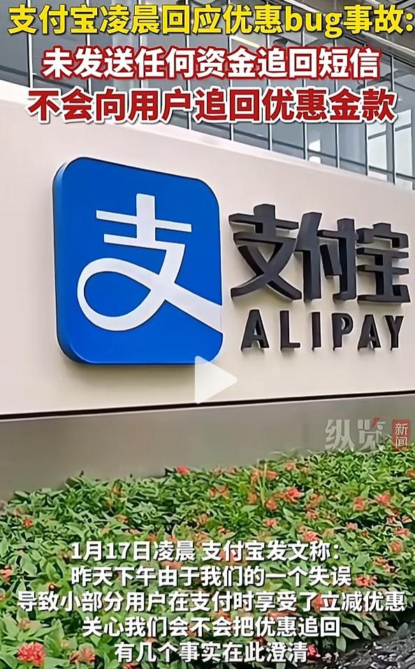 事发后,支付宝迅速行动。1 月 17 日凌晨,官方微博发布说明,称因营销活动后台配置失误所致,并承诺不追回已发优惠金,还提醒用户防范诈骗短信。