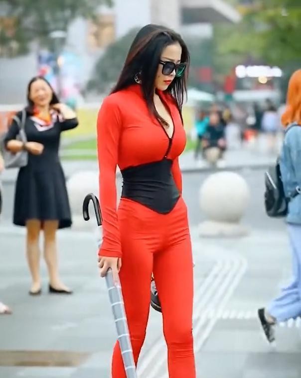 女子地铁穿着一件性感的连体衣,搭配紧身裤,让她显得迷人动人。在地铁车厢里,她犹如一个走入时尚秀场的模特一般,引来了众多乘客的目光。人们纷纷低头,害羞地避开眼神,不敢直视这个性感的风景。