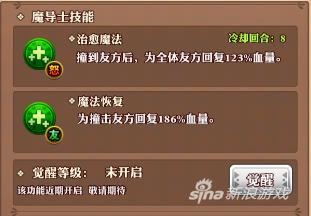 2、大招:治愈魔法,撞到友方后,为全体友方回复123%的血量。冷却8个回合