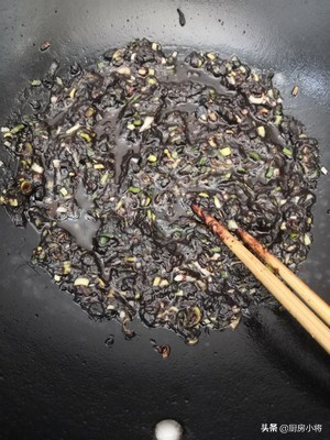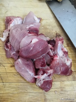 梅干菜清洗8-10分钟,然后泡发一会再清洗一遍(我用的是冷水,因为一会要跟肉一块煮)