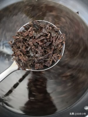 6.炖好肉跟豆瓣酱一块捞出切碎,其他料只放了两片姜