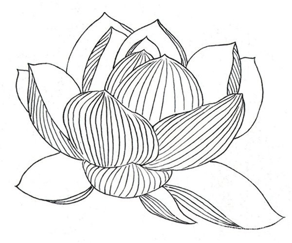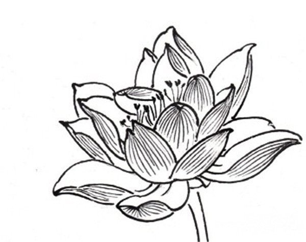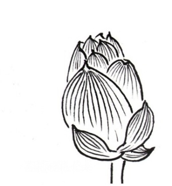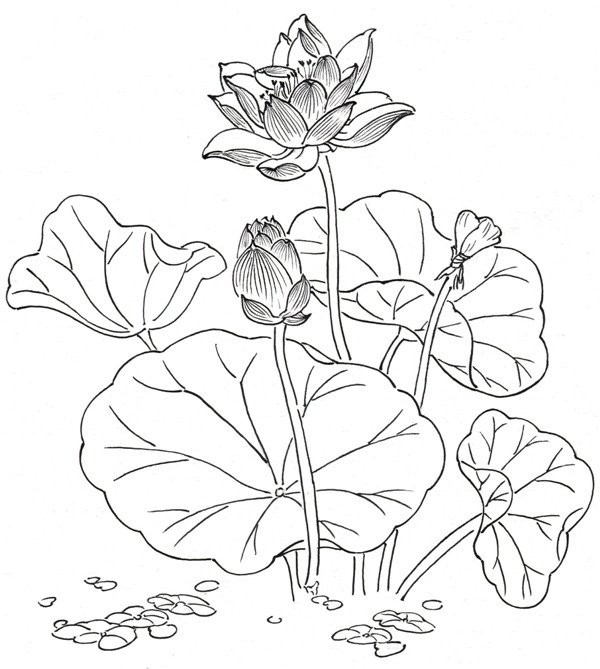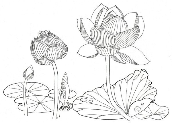 荷花是比较常见的白描题材,荷花花朵的形态要勾勒自然,用细线画出花瓣上的纹理,叶子的形态要画到位。分享白描荷花的绘画教程。