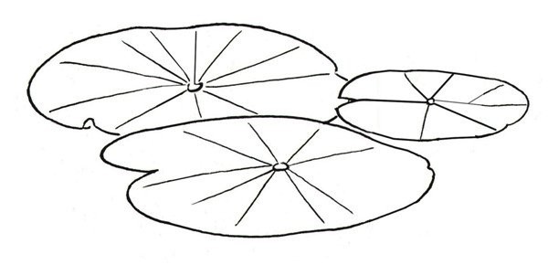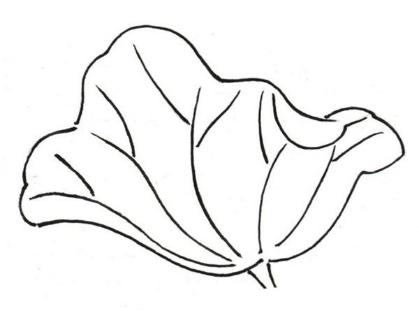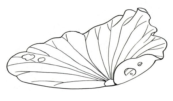 荷花花朵的形态要勾勒自然,用细线画出花瓣上的纹理,叶子的形态要画到位,在底部增加一些小荷叶,可表现水面的效果。